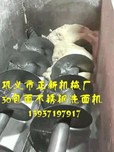 4、洗面筋機洗面:停機12分鐘后,可往面斗內倒入30斤左右的水,開機洗面,洗至3分鐘后停機排面漿。